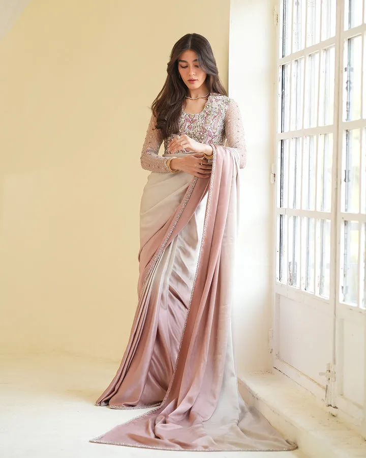 Description: Radiating sophistication, Zoia is a modern classic. Crafted from ombré pink and creme Korean Raw silk, the saree blouse features an amalgam of beguiling resham and sequin motifs that dazzle with brilliance. Paired with an embellished saree, this versatile piece is a total wardrobe must have.