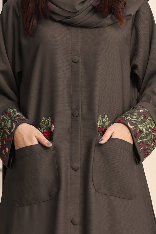 Embrace the understated elegance of modest fashion with the Brown Zoom Fabric Abaya from the Rania collection by Hijabulhareem (0118-K-752). Meticulously crafted, this captivating piece effortlessly merges traditional modesty with contemporary…
