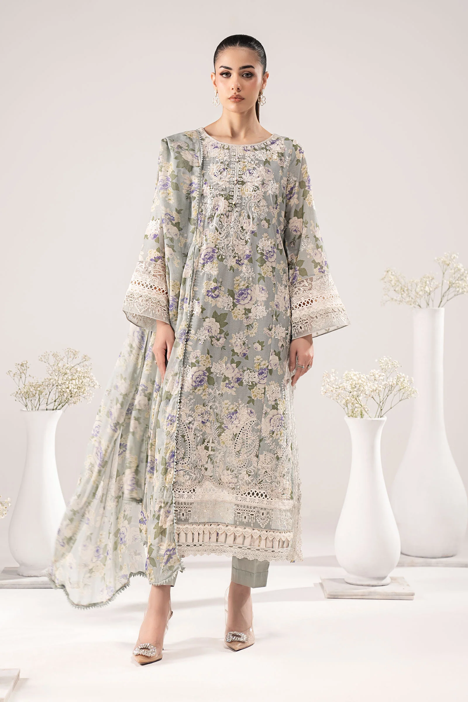 Printed Straight Sleeves With Embroidery