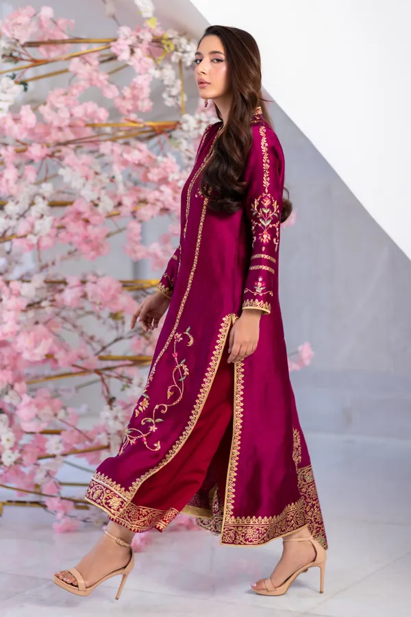 Our signature Mina Hasan block print is paired with gorgeous zardozi details in this striking plum outfit! With beautiful and delicate work throughout, this piece is easy to dress up or down for many occasions! Complete it with a matching block print dupatta.